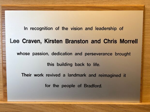 The plaque will be proudly displayed in Bradford Live so that Lee, Kirsten, and Chris’s names are engrained in the building’s history forever.