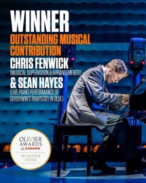 The award for OUTSTANDING MUSICAL CONTRIBUTION went to Chris Fenwick (Musical Supervision & Arrangements) and Sean Hayes (Live Piano Performance of Gershwin’s Rhapsody in Blue) for Good Night, Oscar at the Barbican Theatre.